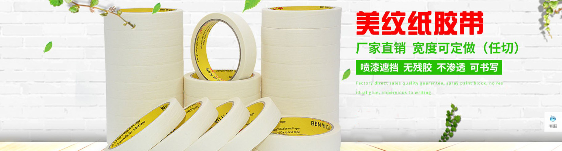 • 1、耐高溫美紋紙膠帶:主要可以用于封箱、烤漆、噴漆、包裝固定、建筑裝潢等行業以及塑料、金屬件等高溫烤漆噴涂時的遮蔽保護。2、可廣泛應用于包裝,熱塑,復合,封口熱···
